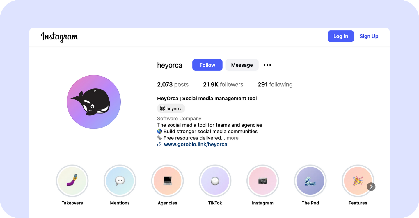 You can even create branded highlight covers, like HeyOrca, to give your feed that on-brand look it deserves.